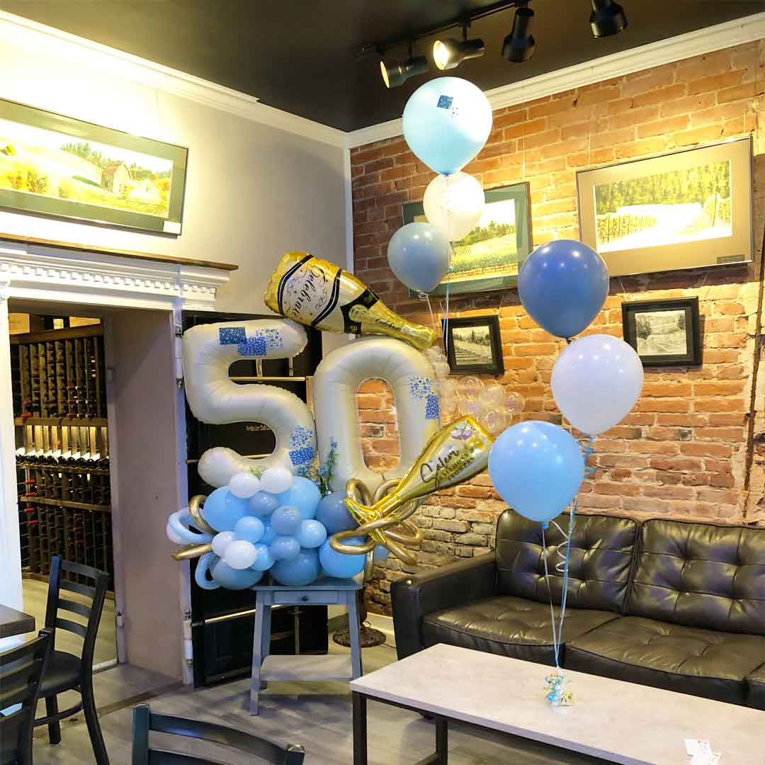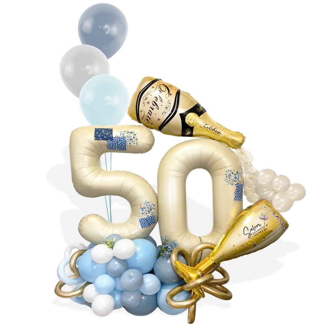 Captura la magia de las ocasiones especiales con nuestra carpa de globos con números Azure Blossoms. Estos globos con números de color crema están adornados con una botella burbujeante que se vierte sobre una taza, todo en una paleta de colores azules vibrantes. ¡Perfectos para agregar un toque de fantasía a cualquier celebración!