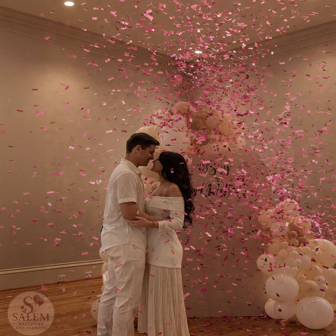 Diseñado para celebraciones bellamente coordinadas, Sweet Reveal Moment ofrece una explosión de confeti profesional en el momento justo, que se fotografía sin esfuerzo y mantiene el lugar interior cómodo y listo para la celebración.