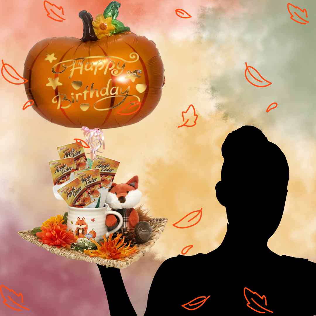 ¡Sorprenda a su ser querido este otoño con nuestro acogedor globo tipo canasta de regalo "Sugar Pumpkin"! Completo con una encantadora taza de zorro, un lindo compañero de peluche, bolsitas de sidra de manzana y un globo de calabaza personalizado, este regalo captura la calidez y la esencia de la temporada. Añade un nombre y números de globo para darle un toque especial. ¡Haz tu pedido ahora y difunde la alegría del otoño!