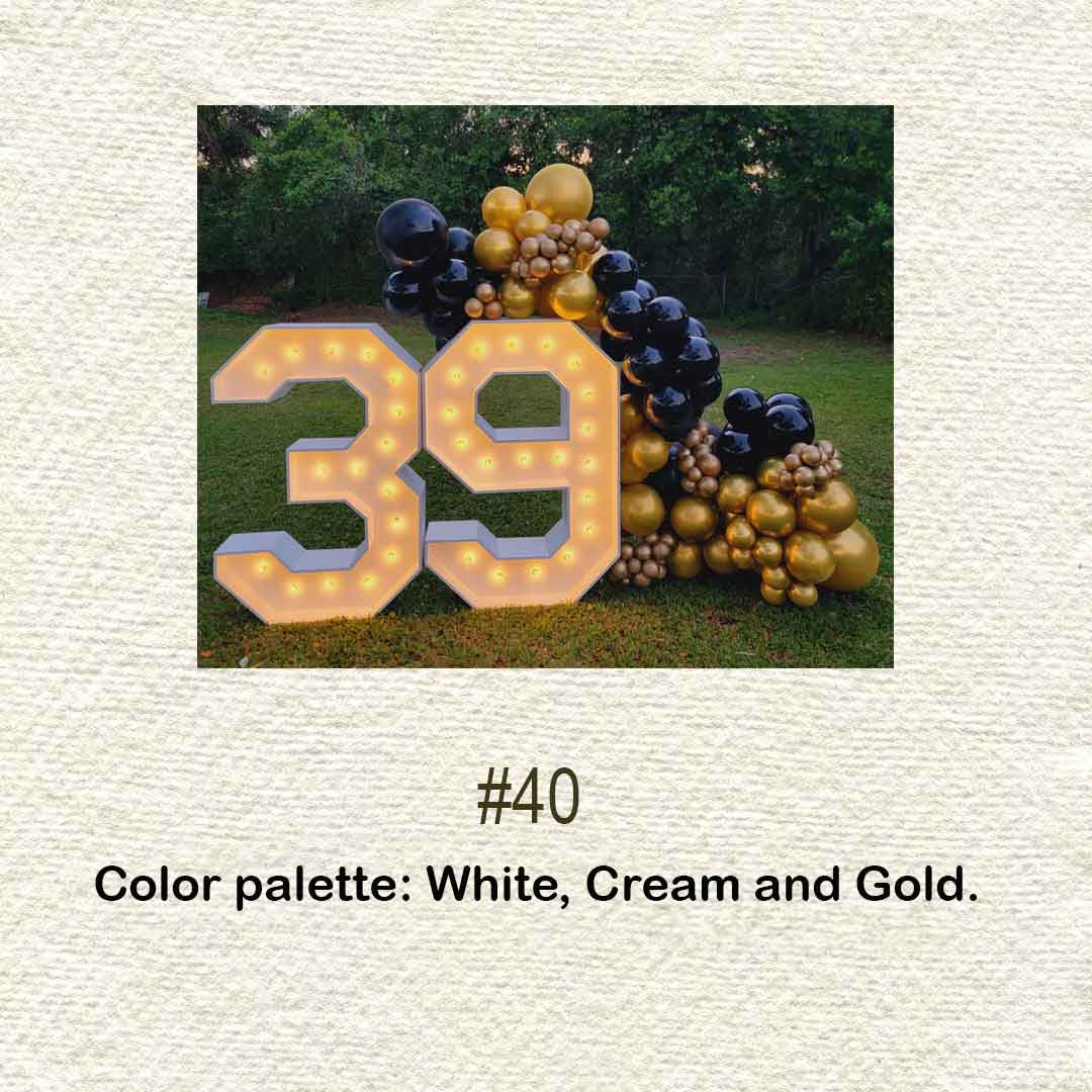 Marquee Number Display. Balloons in White, Cream, and Gold. Marquees #40.