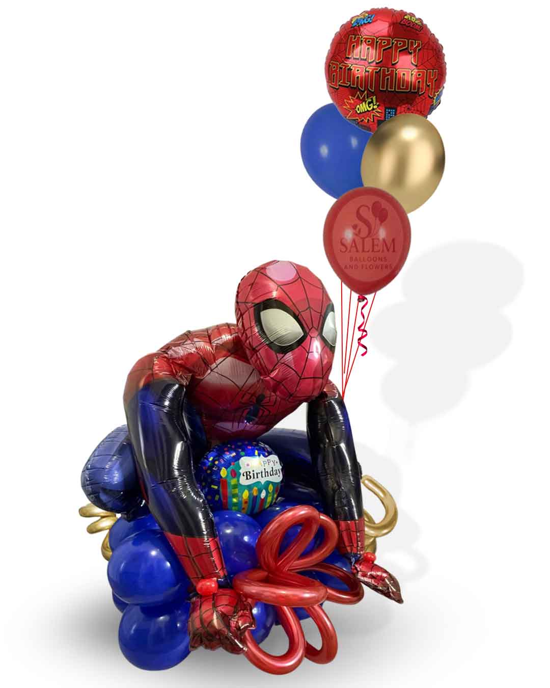 Bring superhero magic to life with this bold Spider-Man balloon arrangement. A show-stopping centerpiece that turns any birthday into a Marvel-worthy adventure! Standing at approximately 7 feet tall, this dynamic design features vivid red, blue, and gold tones that instantly capture the excitement of a superhero celebration.