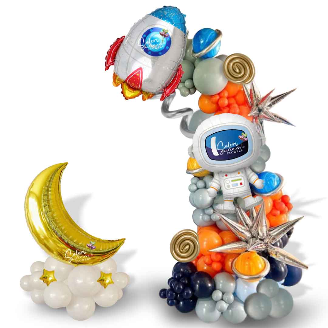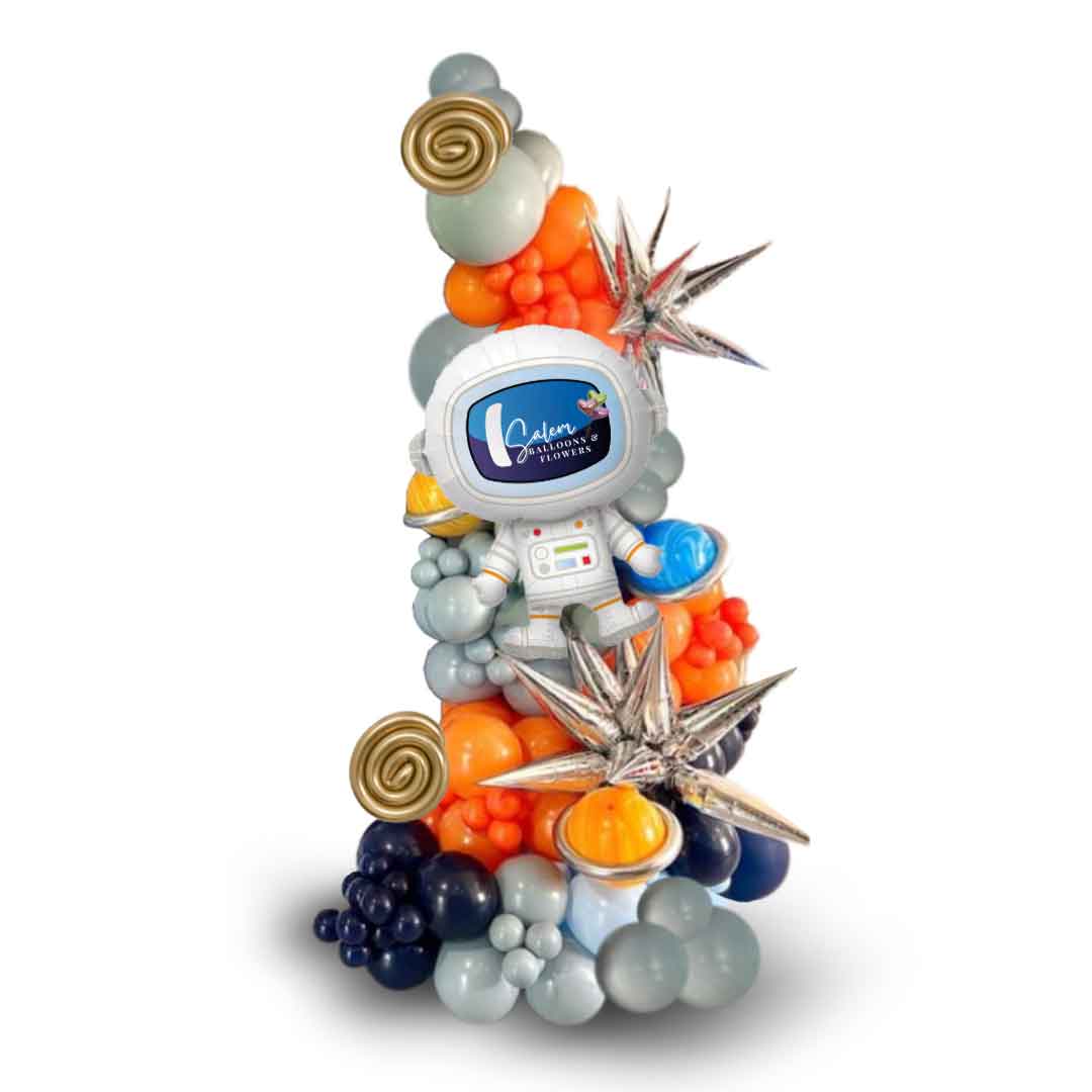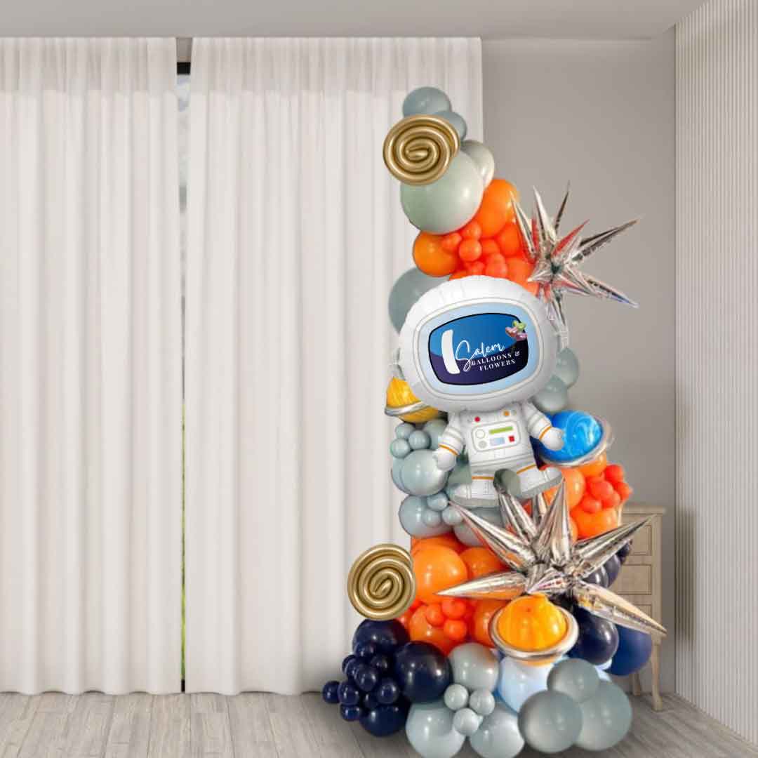 Take your next party out of this world with our Beyond the Milky Way Balloon Decor! This space-themed setup includes a self-standing balloon garland adorned with a large astronaut, planets, stars, and rocket balloons. Make any event a stellar experience with our unique and playful décor.