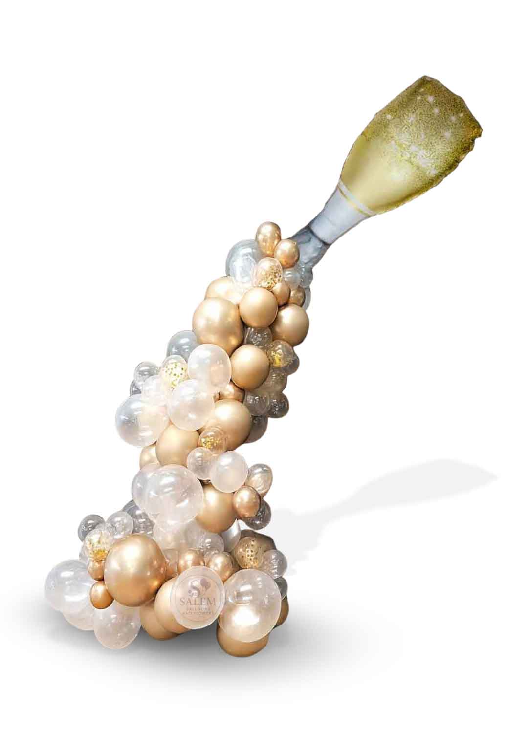 Raise a toast in style with this stunning balloon column, designed to resemble a champagne bottle pouring bubbles. Standing approximately 8 feet tall, this show-stopping piece is crafted with a mix of chrome gold, clear, and confetti-filled balloons that perfectly capture the look of sparkling champagne. Topped with a large champagne bottle balloon, it’s the ultimate statement piece for anniversaries, weddings, milestone birthdays, New Year’s Eve parties, or any celebration that calls for elegance and excitement.