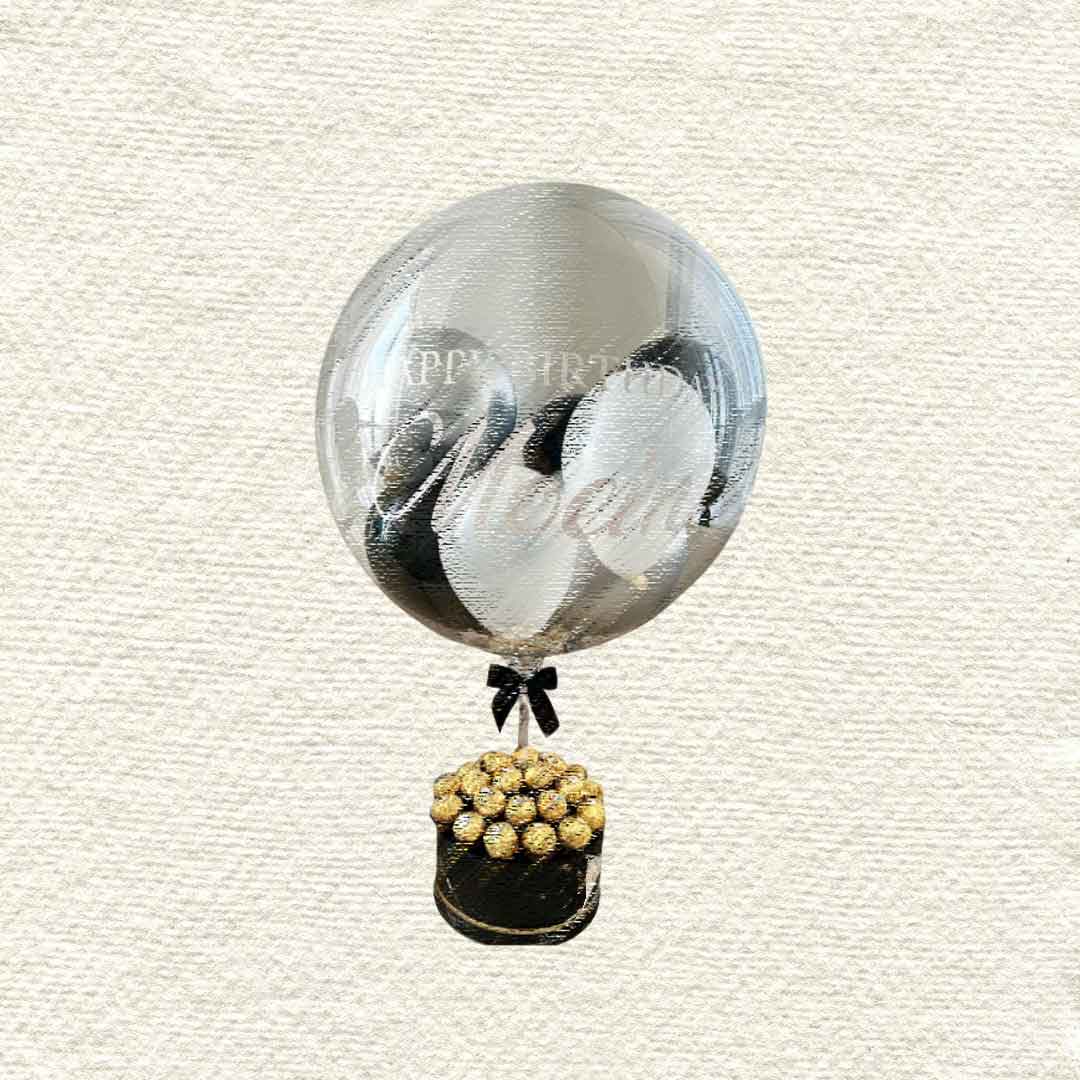 Round box with Ferrero Rocher Chocolates and bubble balloon with message