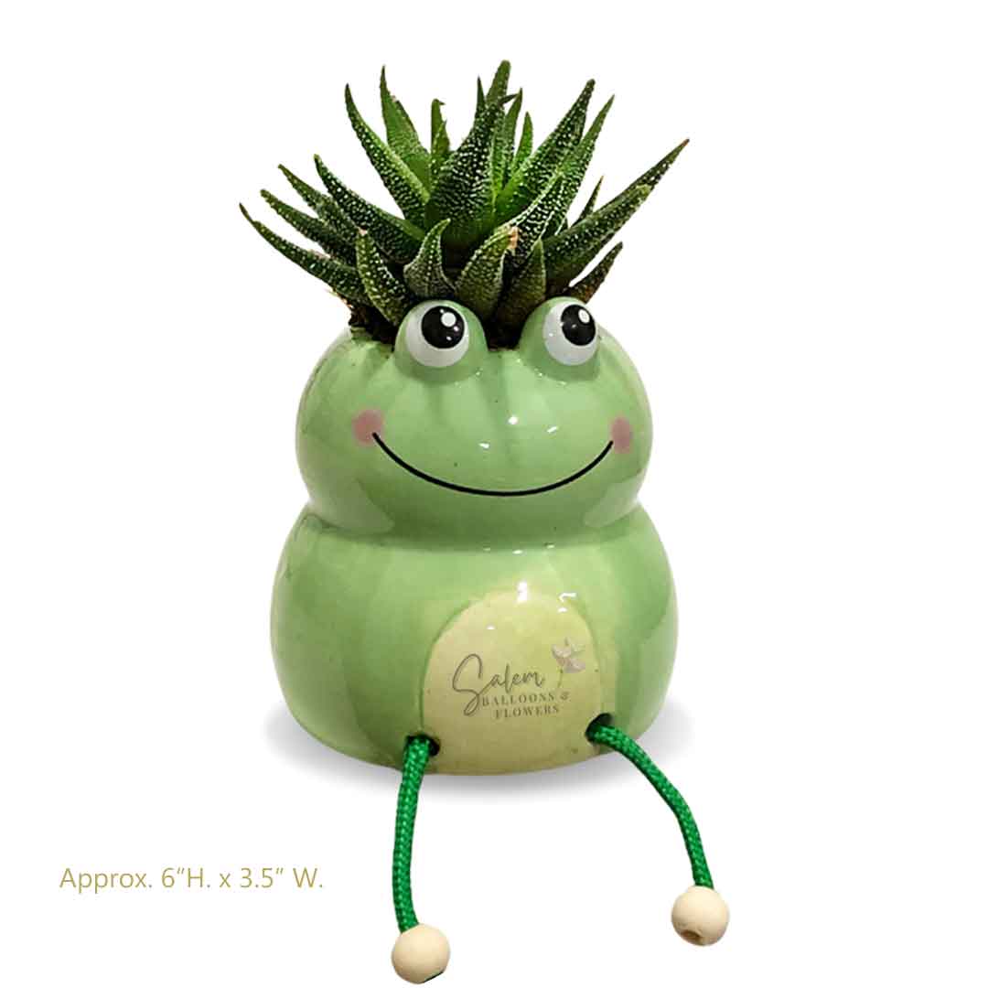 Indulge in the cutest addition to your gift with our FROGGY PLANTER. Featuring a gorgeous mini-succulent plant, this ornamental plant is so versatile, it will add a touch of charm to any space from a desk to a window and anything in between. Let your love grow as you admire this adorable planter, perfect for any plant lover. A gift enhancer that will grow over time!