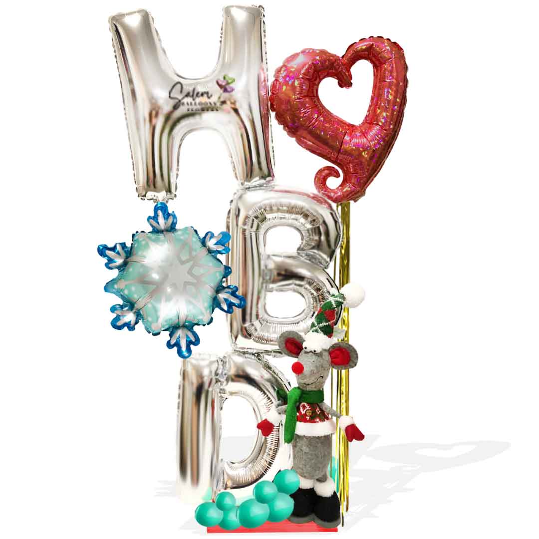 This festive holiday season, surprise your loved one with the unique and exclusive HBD A Cozy Christmas Mouse. It features balloon letters H, B, and D with a cozy Christmas mouse plush wearing a winter hat, a scarf, and an ugly Christmas sweater. Make this the most memorable holiday with the perfect way to spread joy and celebrate the spirit of the season.