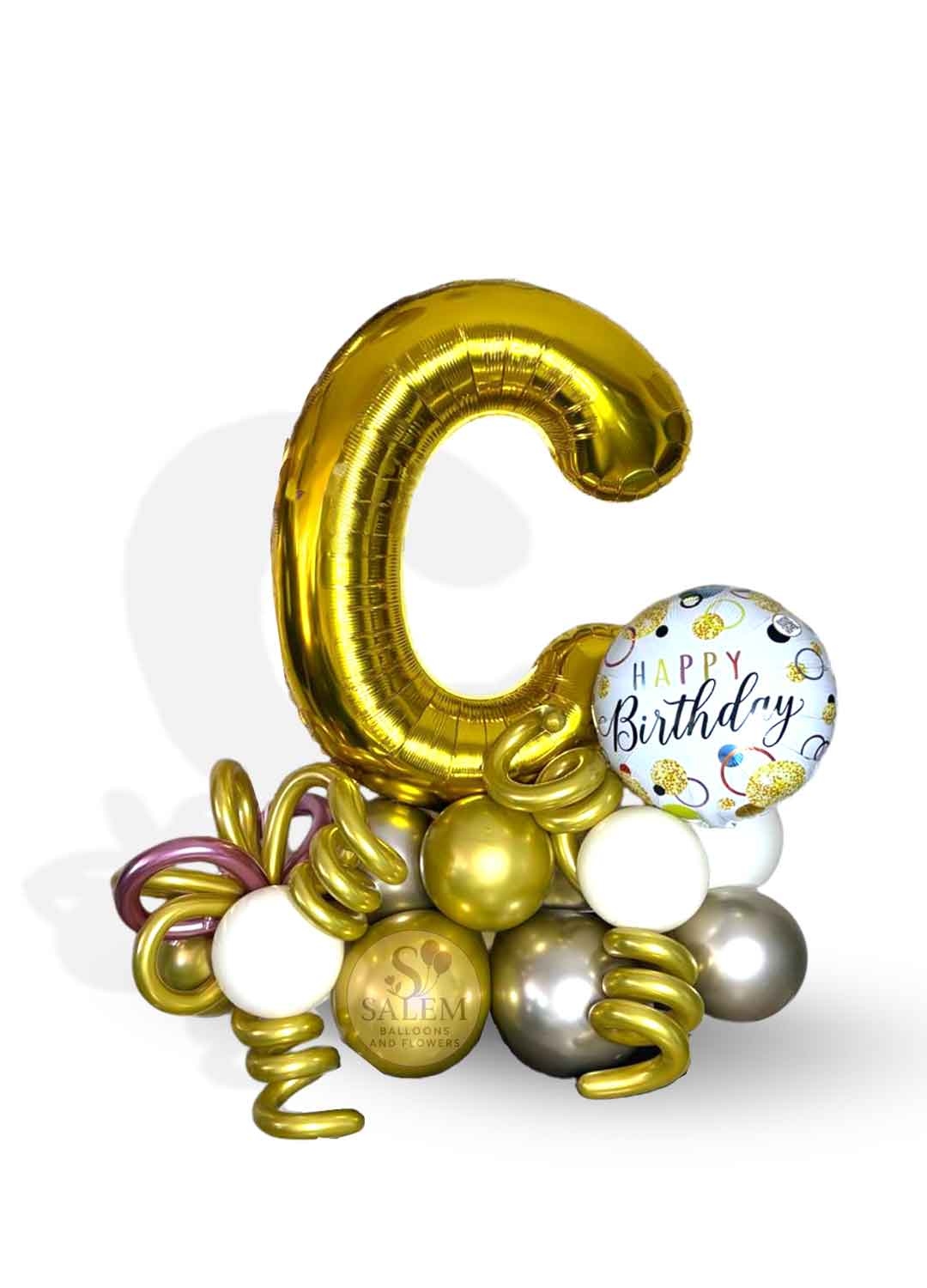 Celebrate a special someone in style with the HBD MY INITIALS BALLOON MARQUEE. Crafted with sophistication, this luxurious balloon gift features the initial letter of the birthday person adorned with flowers, plus an eye-catching Happy Birthday balloon. This gorgeous balloon bouquet is adorned with lots of  ribbon, and curly balloons. The deluxe style comes with a set of helium balloons with tinsel tails.
