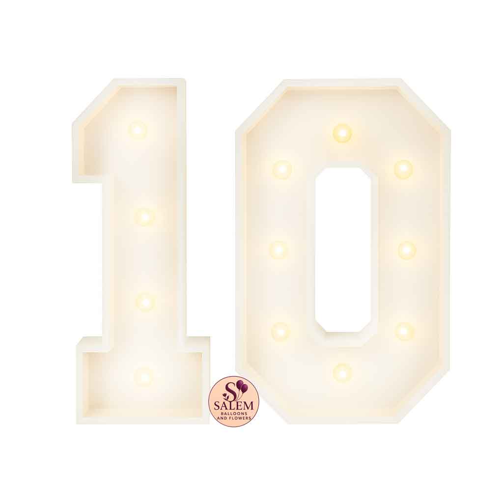 Illuminate your special occasions with our luxurious Marquee Number Rental Service. Featuring 3-foot-tall white wooden numbers adorned with warm lights, these displays create an elegant ambiance perfect for corporate events and milestone celebrations. Make your important moments unforgettable with a stylish glow that adds a refined touch to any setting.