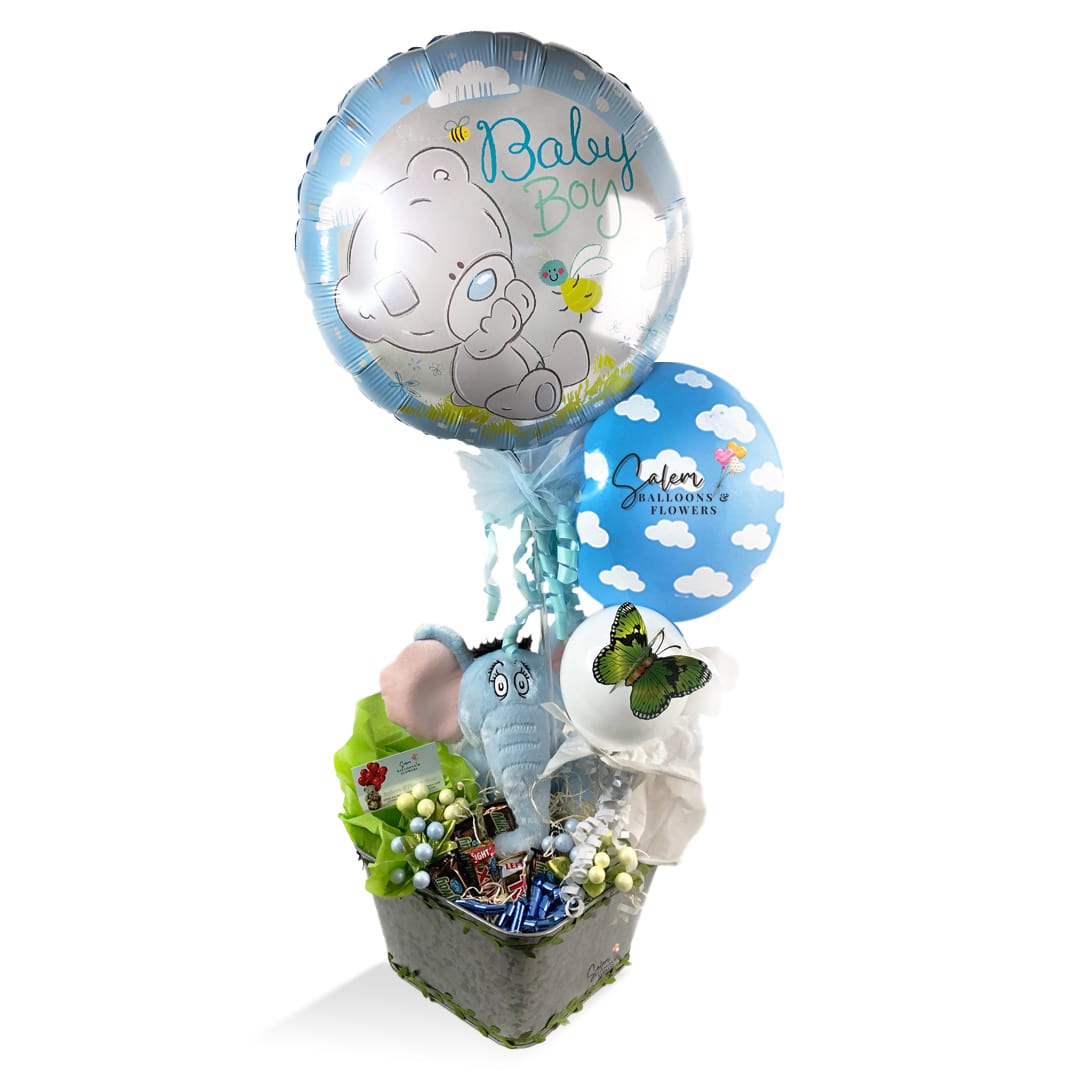 It's a boy balloon bouquet gift. featuring a Mylar balloon with an It's a boy message. and a soft touch plush. It's a memorable way to celebrate the new arrival, bursting with joy and love. This gift bundle features a timeless keepsake and a plush companion, perfect for a baby shower or to welcome a little one into the world. You can send it as a wonderful gift or you can have as a centerpiece of your sweet baby shower.