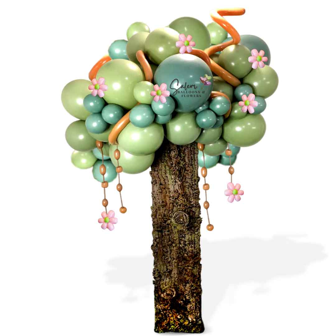 Our Orchard Balloon Tree is a stunning statement piece for any event! This whimsical creation features a realistic wooden tree trunk designed to resemble bark and moss, topped with a vibrant balloon canopy. Adorned with flowers and balloon branches, the tree adds a magical touch to your decor. Completely customizable, you can choose the colors and theme to fit your celebration. In the featured design picture, we’ve embraced a fun "Bees" theme, but the possibilities are endless! Perfect for adding charm and creativity to your special occasion.