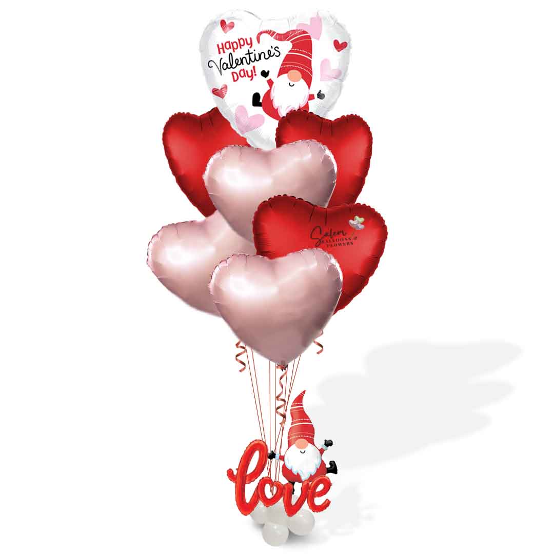 Make their Valentine's Day extra special with our stunning  "Valentine's jumping Gnome" balloon bouquet. Featuring a playful gnome jumping for joy, symbolizing the love and happiness that comes with the holiday. Perfect for delivery in Salem Oregon and nearby cities. Show your love with this exclusive, elegant bouquet."
