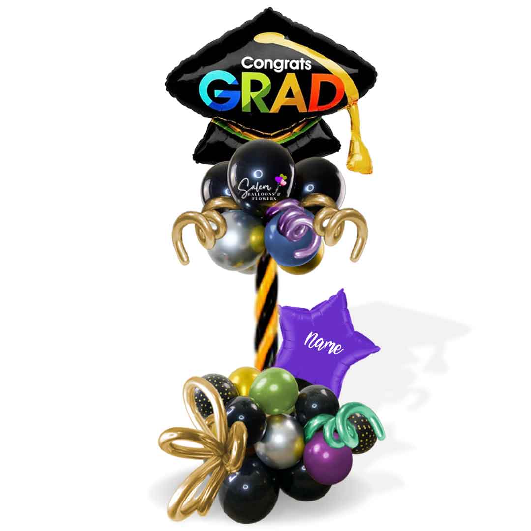 You Did It, Grad! Extra tall congrats balloon column. Featuring an extra-large Mylar balloon with a Congrats Grad! message. An amazing gift, that also doubles as a prop to take memorable pictures. You can personalize your bouquet with their name.